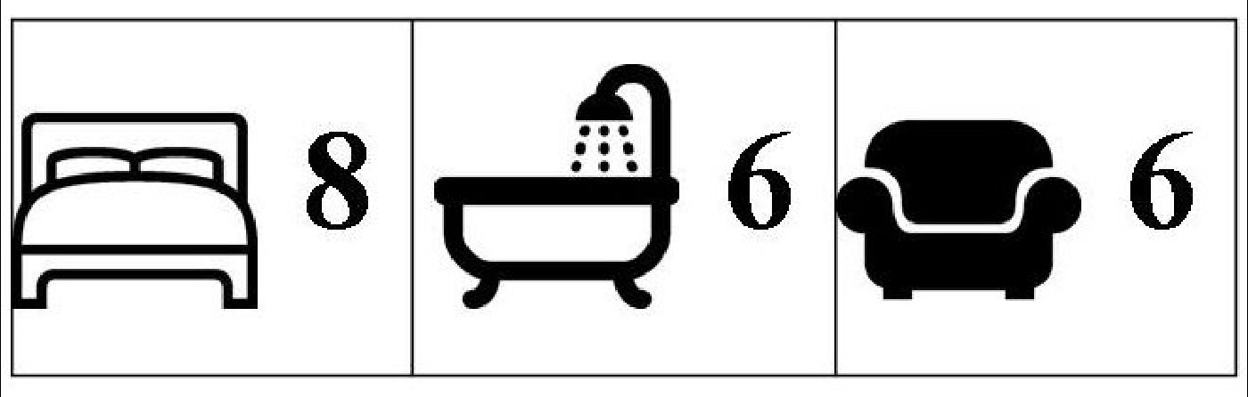 Es gibt insgesamt sechs Wohnungen mit einer Gesamtfläche von 370 qm. Zwei der Wohnungen verfügen jeweils über zwei Schlafzimmer, ein Badezimmer und geräumigen Wohnraum mit Küchenzeile. Die anderen Wohnungen haben jeweils nur ein Schlafzimmer, ein Duschbad und einen Wohnraum mit Küchenzeile. Fünf Wohnungen befinden sich im Hauptgebäude, während eine Wohnung unterhalb des Pools und der Sonnenterrasse liegt, wo sich auch ein überdachter Abstellplatz für mehrere Fahrzeuge befindet