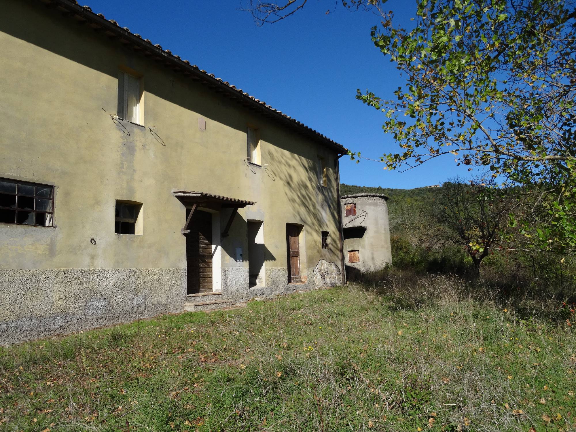 Vue panoramique sur la vallée. A environ 3 km du village où vous pourrez trouver magasins, poste etc … et la gare, environ 11 km de distance d’Umbertide (Pg). Le toit a déjà été refait, le premier étage est habitable mais a encore besoin d’une petite rénovation. Le rez-de-chaussée est entièrement à rénover. Chaque étage: 180 m². Dépendance de 50 m². Terrain: 5 Hectares